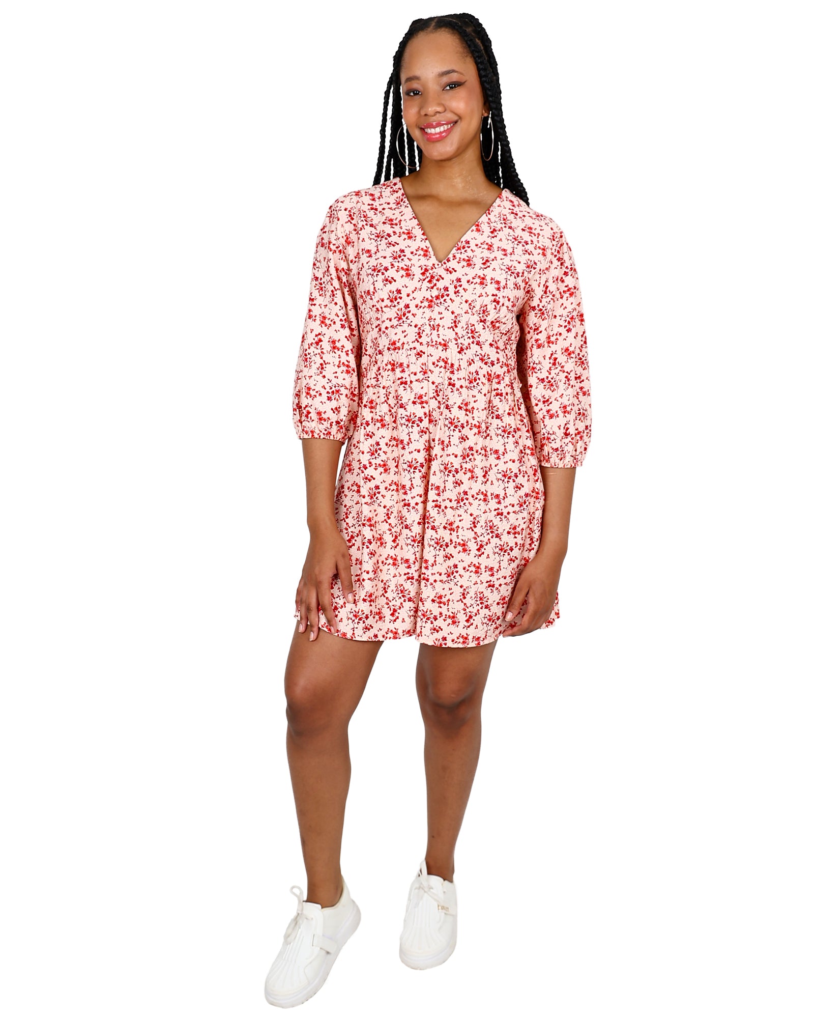 Floral Print Puff Sleeve Mid Dress
