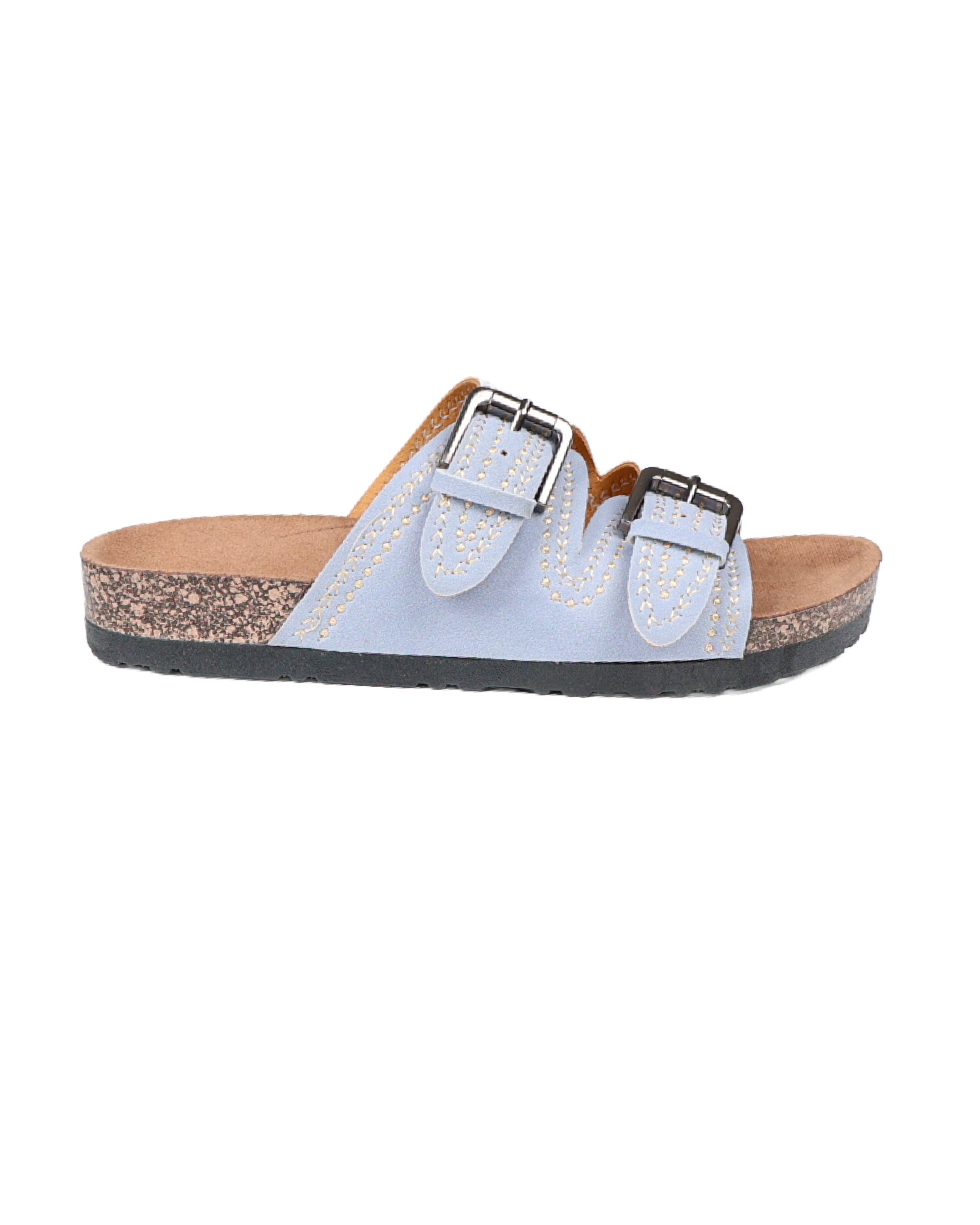Blue Double Buckle Stitch Detail Slip-on Sandal